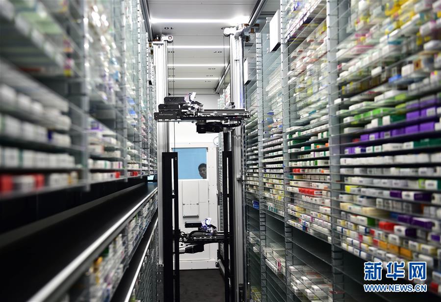 安徽医科大学附属阜阳医院引进的全自动药品存储分发系统为患者取药(2017年7月9日摄)。新华社记者 刘军喜 摄