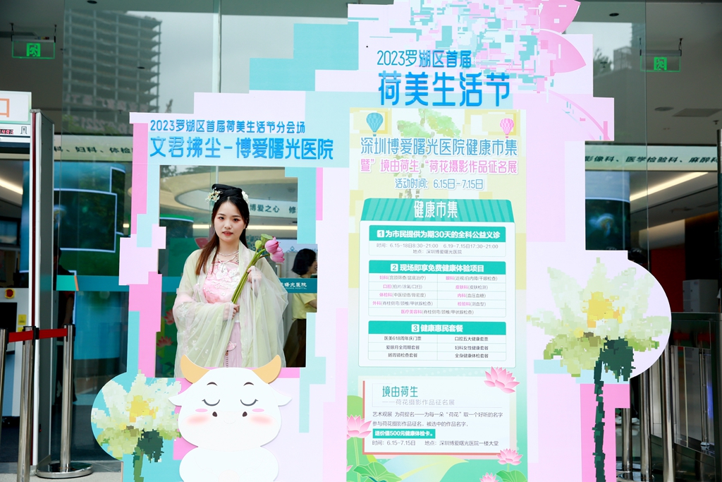 此次2023年罗湖区首届荷美生活节深圳博爱曙光医院分会场通过政府搭台、医院摆摊、市民赶集的模式,打造集文化休闲、医生义诊、便民健康服务于一体。市民到这里赶集,打卡观看摄影展参选荷花女神的同时,更是在体验生活美感。