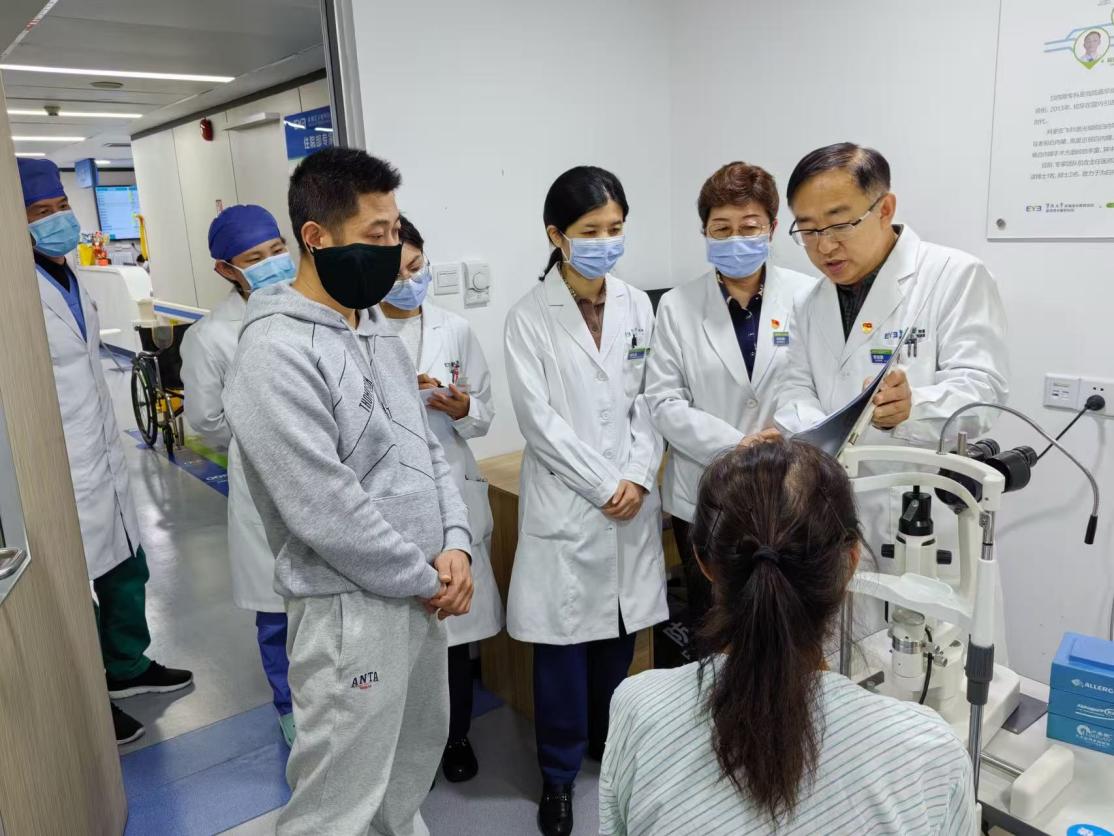 团队始终秉持团结协作、乐于奉献、勇于拼搏的精神内核。团结是不变的“主旋律”,各岗位高效联动、协同作战,以刻苦钻研的态度打磨技术;面对其他医院望而却步的疑难复杂病例,科室却常常迎难而上:眼况棘手的独眼老人、角膜移植术后虹膜严重破损的患者、肺移植术后身体极为脆弱的特殊患者……他们用一场场攻坚克难的“光明之战”,为患者重燃希望,以行动诠释医者担当。