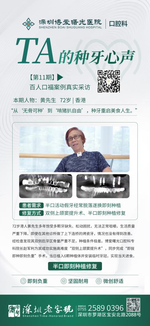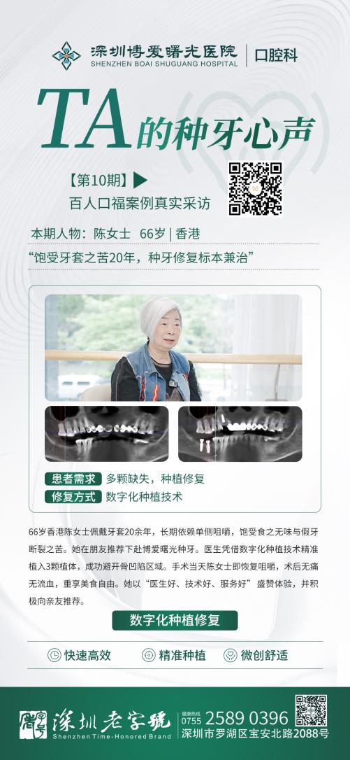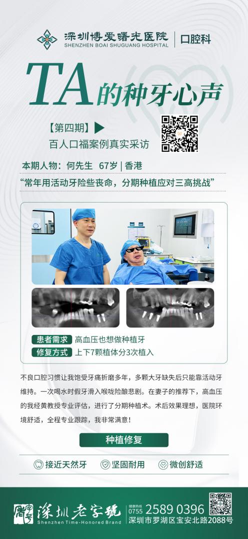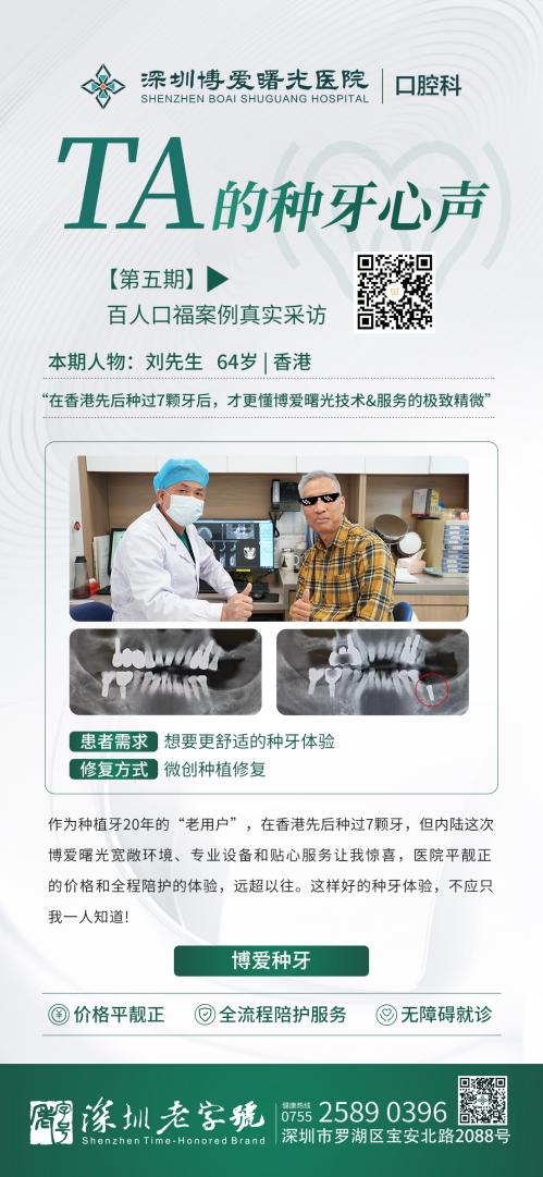 此外,在长期的医疗服务中,博爱曙光口腔凭借扎实的专业实力与细致周到的服务,赢得了广大市民的高度信赖,尤其受到众多港人客户的持续好评。其中,“TA的种牙心声·百人口福案例真实采访”获得广泛回响——众多受益者分享了在博爱曙光的种牙经历,从初诊咨询、方案定制到术后关怀,大家以亲身经历讲述在博爱曙光口腔科感受到的专业诊疗与温暖服务,并给予真挚认可与高度评价,成为医院口碑传播中最动人的注脚。