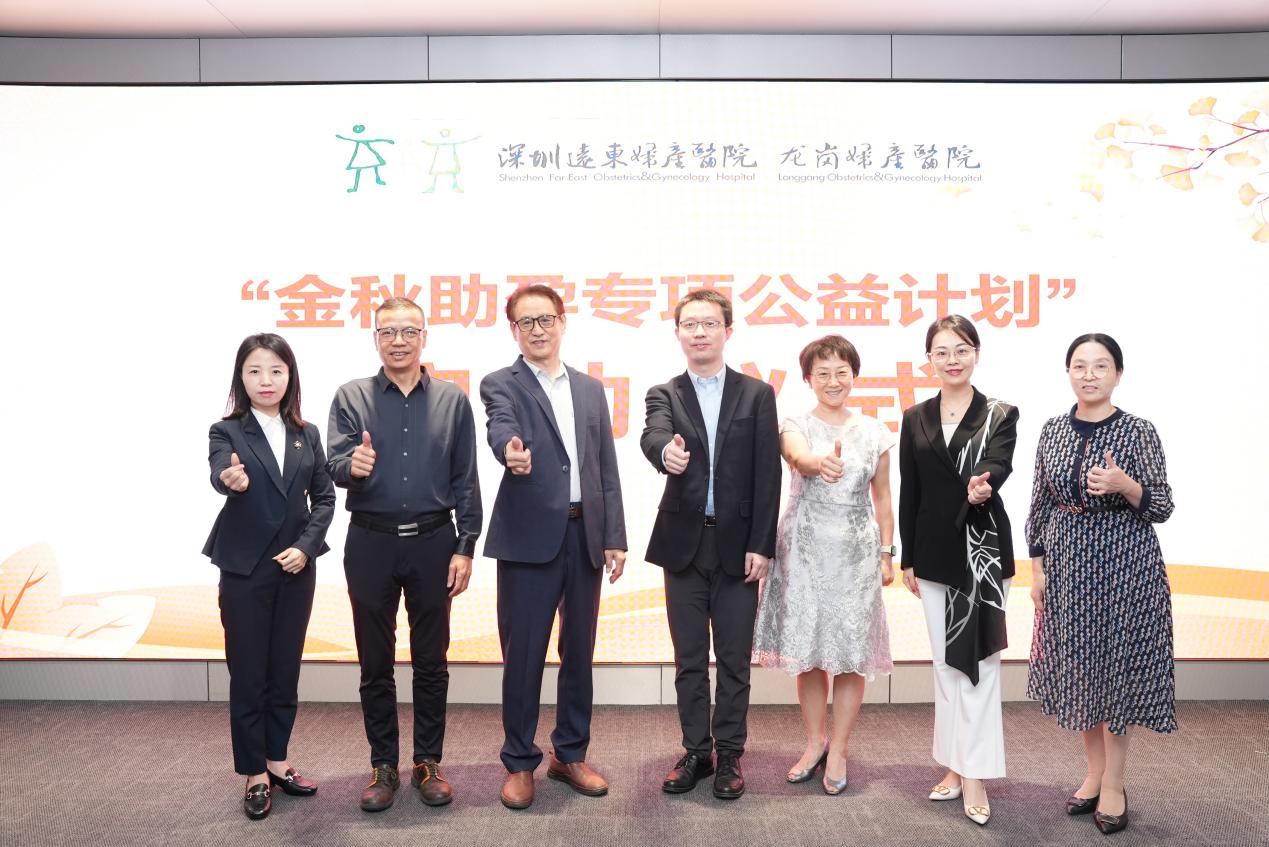 深圳市保健科技学会会长梁凯林先生(左三)、远东龙岗妇产医院院长房木强先生(左二)、经营院长邓兰女士(右二)、行政人事院长朱小凤女士(左一)以及特邀北京大学深圳医院夏曦博士(左四)、宝安区妇幼保健院李瑾教授(右三)、远东龙岗妇产医院妇科李世梅主任(右一)启动本次公益计划,公益计划将持续整合妇科、生殖、心理等多学科优质资源,构建起“筛查-诊疗-助孕-分娩-产后”一体化的公益服务闭环,切实降低备孕女性的生育焦虑与经济成本,并提升优生优育的服务水平。