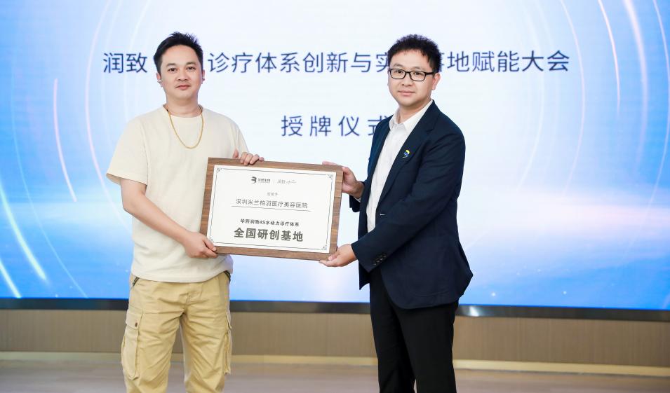 随后,华熙生物正式授予深圳米兰柏羽为4S诊疗体系全国首批研创基地机构。深圳米兰柏羽副总经理陈杰先生与华熙生物领导共同上台,进行了庄重的授牌仪式。深圳米兰柏羽美容皮肤科技术副院长陈玉、深圳米兰柏羽美容皮肤科技术主任孙翠莲、深圳米兰柏羽美容皮肤科技术主任付新洒、深圳米兰柏羽美容皮肤科技术主任刘姗均获得全国首批临床赋能专家授牌,此环节也标志着双方将展开更深入的合作,共同推动医美行业的发展。