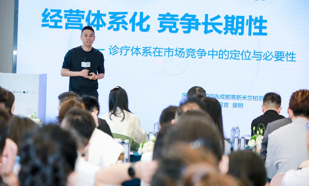 随后,深圳米兰柏羽&成都高新米兰柏羽首席产品官吴明先生以《诊疗体系在市场竞争中的定位与必要性》为题,指出4S诊疗体系的落地应用正从行业标准、机构运营、产品技术、医学价值及求美者体验等各方面,驱动医美市场生态升级。深度剖析新诊疗体系在提升医疗质量、构建品牌护城河中的战略价值,并分享了深圳米兰柏羽依托体系化服务在高端市场确立差异化优势的实践途径。