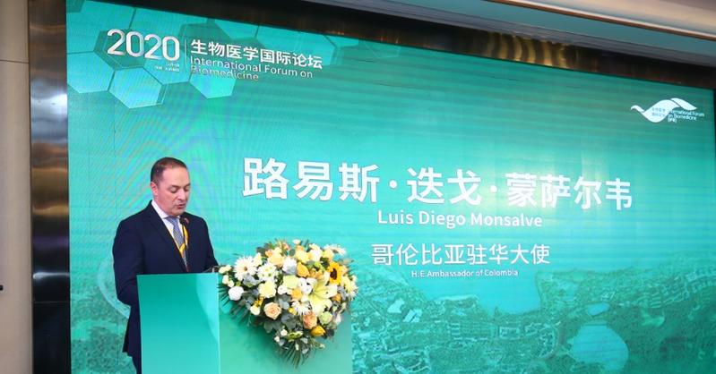 哥伦比亚驻华大使Luis Diego Monsalve在论坛上致辞。他指出2020年恰逢哥中建交40周年。40年来,两国各领域友好关系不断深化。疫情爆发后,中国和哥伦比亚互相捐赠医疗物资,携手抗疫、共克时艰。哥伦比亚政府希望推进在哥伦比亚建立疫苗厂,促进哥中生物医药行业领域的更多合作。