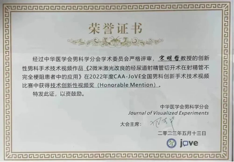 喜讯:深圳中山泌尿外科医院宋明哲主任在CAA-JoVE全国男科创新手术技术视频比赛中获奖