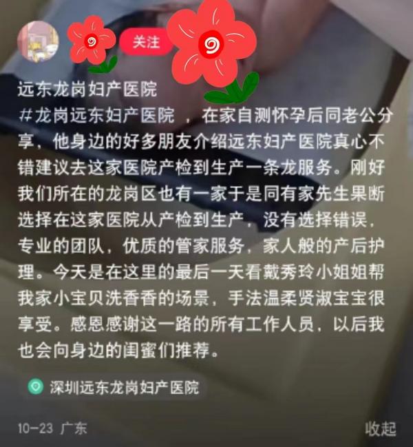 在2023年6月18日以前,妍妍(化名)从未中过什么大奖,免费生孩子更是做梦也没想过。然而,就在今年由深圳远东妇产医院主办的第二十三届国际胎教音乐会上,妍妍幸运地被抽中了特等奖——免费体验价值3万元的远东VIP分娩服务。近日,妍妍已顺利诞下2750克健康宝宝,并于10月22日满意出院。