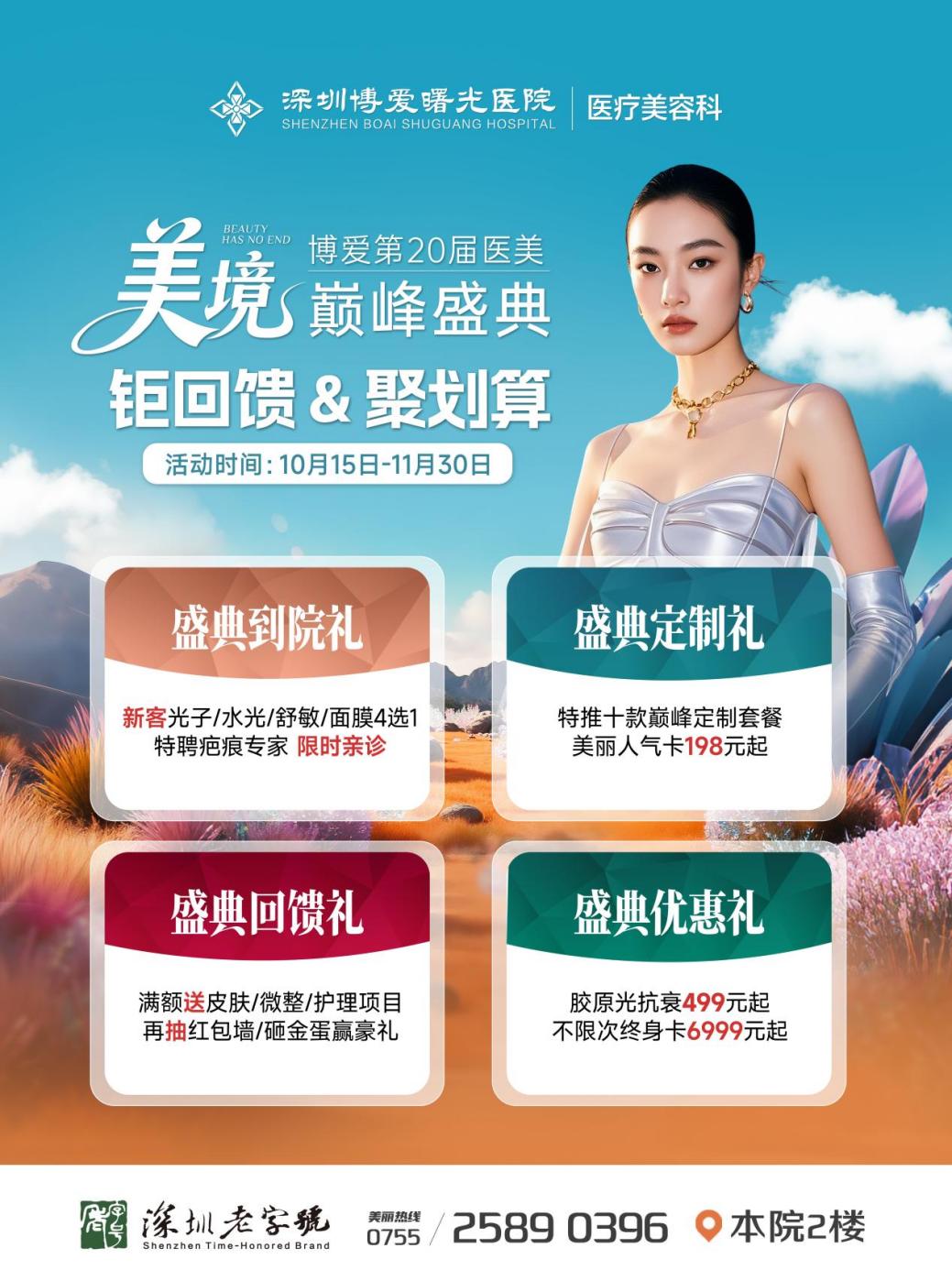 10月15日至11月30日,深圳博爱曙光医院诚邀市民走进“美境”,体验专业与温度并存的医美服务,开启一场安心、舒适的焕美之旅。