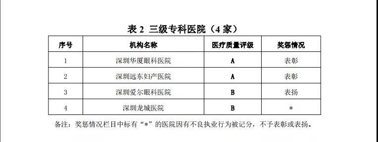 除患者和网名的信任与支持外,2021年10月, 深圳市卫生健康委对2020年度深圳市非公立医院医疗服务质量评价和监测结果进行了通报。其中,深圳华厦眼科医院医疗服务质量表现突出,被市卫生健康委评定为 A级单位,受到通报表彰!
