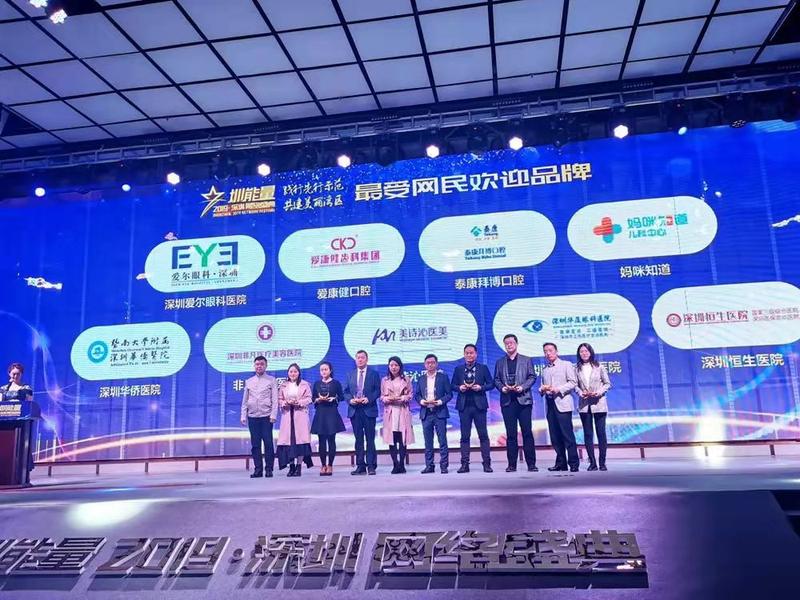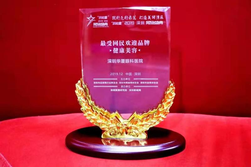 这是“圳能量”深圳网络盛典自举办以来,深圳华厦眼科医院再次荣誉登榜。2019年度健康美容行业“ 最受网民欢迎品牌 ”。